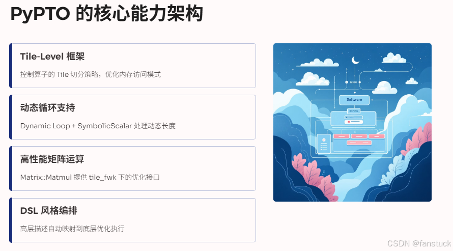而 PyPTO 就是在这样的背景下被推上舞台的:它的任务是把这些复杂结构的计算拆解成可控的算子,并映射到具体的硬件执行路径里。