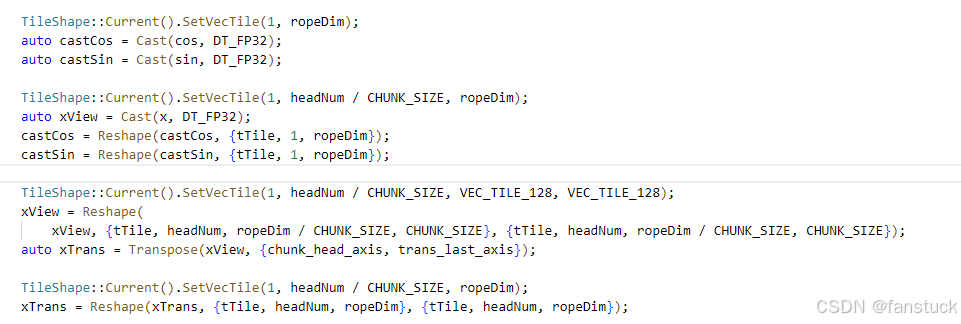 xView = Reshape(xView, {tTile, headNum, ropeDim / CHUNK_SIZE, CHUNK_SIZE});