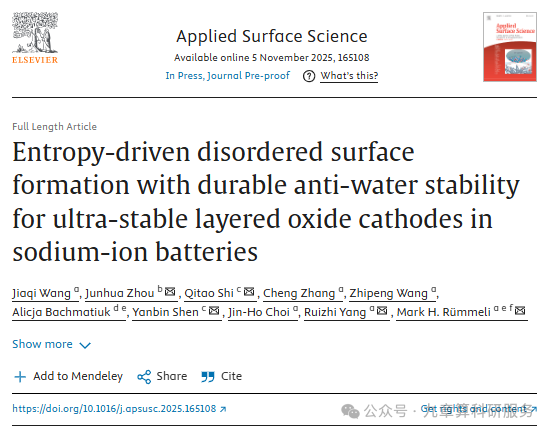 钠离子电池层状氧化物正极在空气中易与H2O/O2/CO2发生副反应,生成NaOH、Na2CO3等表面钝化层,导致活性钠损失、结构坍塌与容量衰减。传统表面包覆或掺杂策略虽能部分改善稳定性,但工艺复杂且存在晶格失配问题。