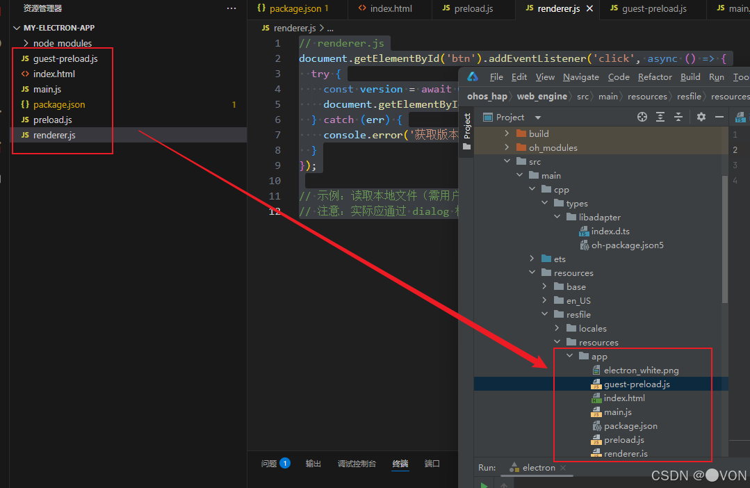 虽然鸿蒙原生推荐使用 ArkTS + ArkUI 开发,但对已有 Electron 项目或偏好 Web 技术的团队而言,"Electron for HarmonyOS"成为一种极具吸引力的过渡方案。本文将以一个完整的 Electron 示例为基础,逐行解析其架构,并探讨如何无缝迁移至鸿蒙 DevEco Studio 开发环境。