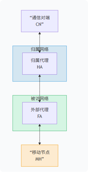 通信对端 :与MN进行通信的对方设备。它可能是一台固定服务器,也可能是另一个移动设备。