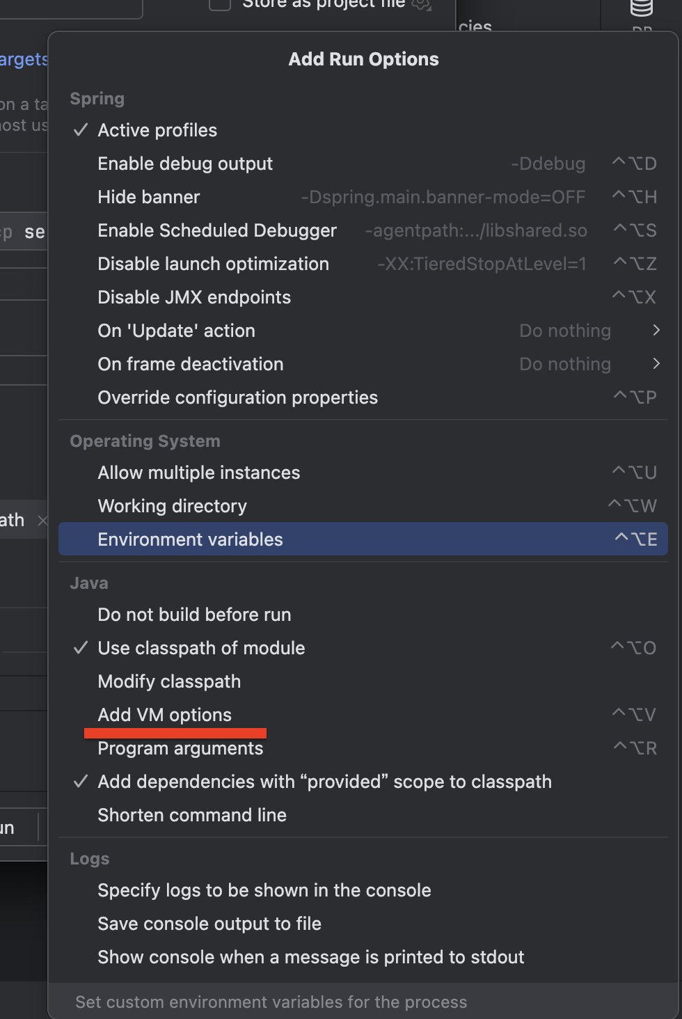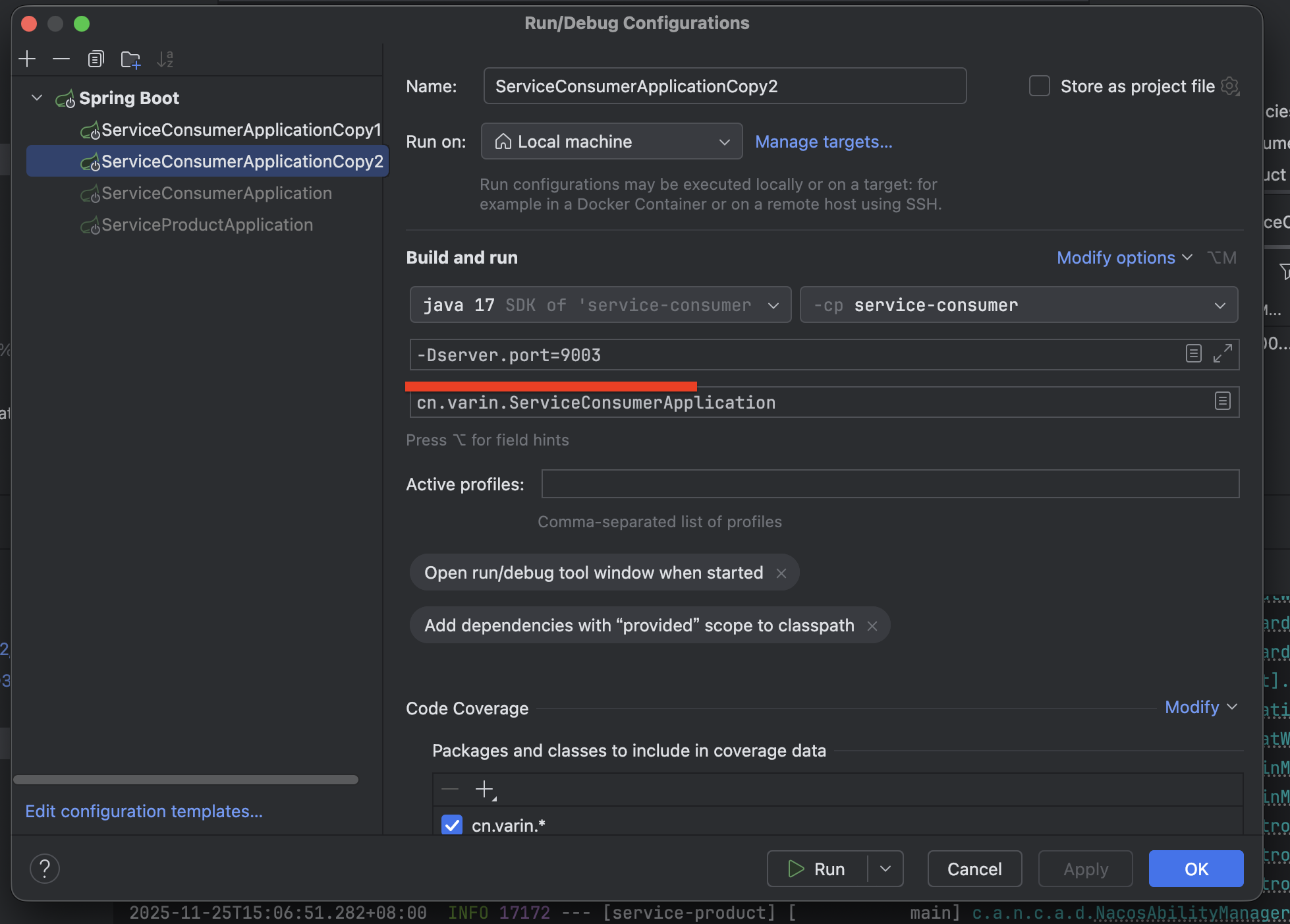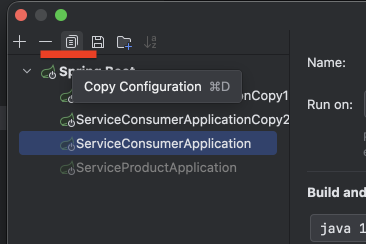 - 复制完成后,点击复制服务的modify options选项并且勾选**add JVM options**
