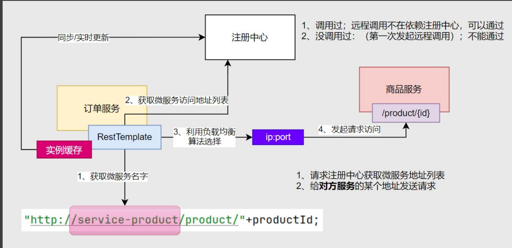 - 服务消费者启动时,向Nacos查询目标服务的地址列表,并将地址缓存到本地内存(默认无持久化,部分版本支持本地文件缓存);