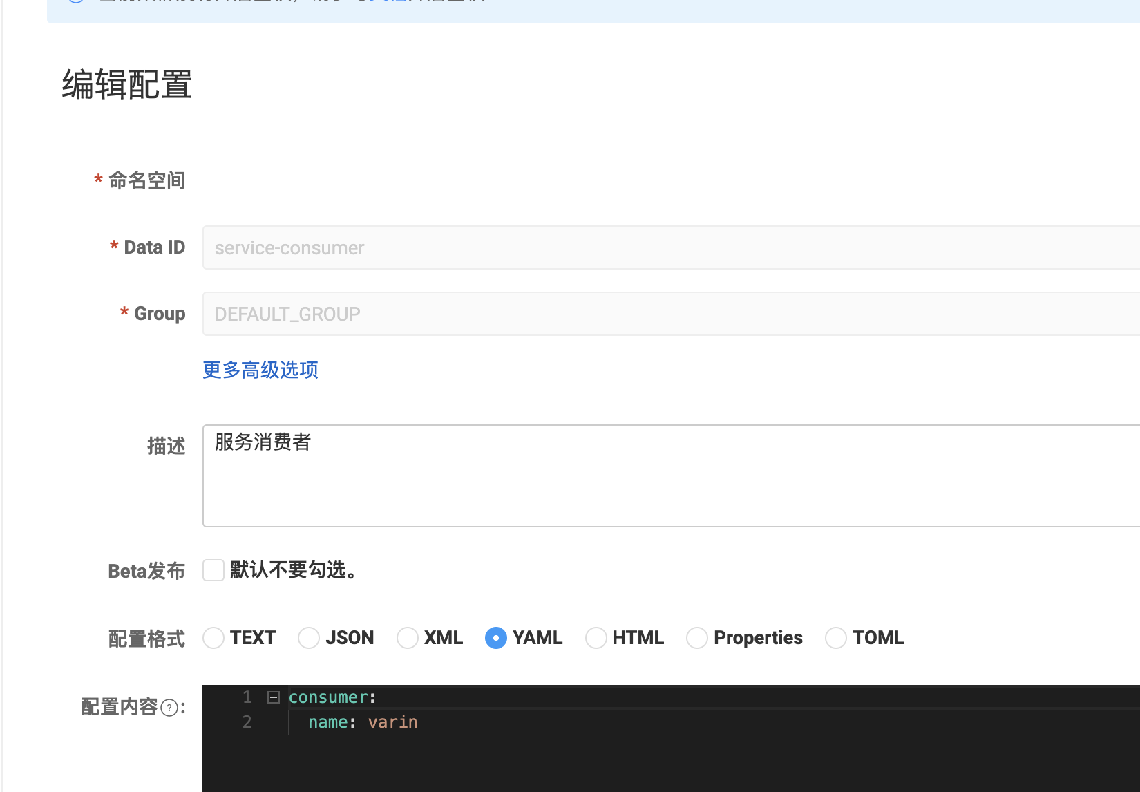 - nacos:user-service-prod.yaml:user-group:prod-namespace-id # 业务配置(用户服务专属配置)