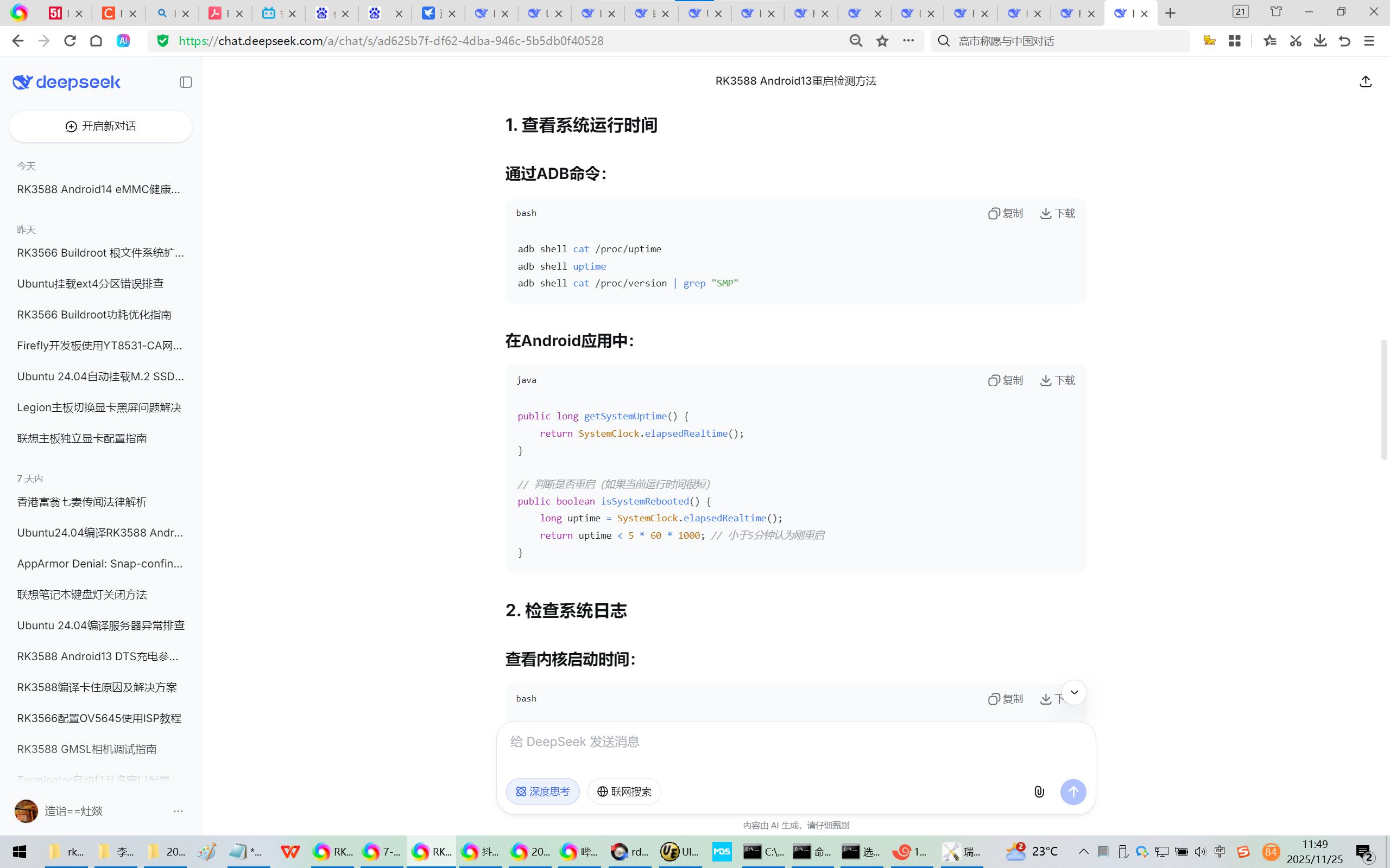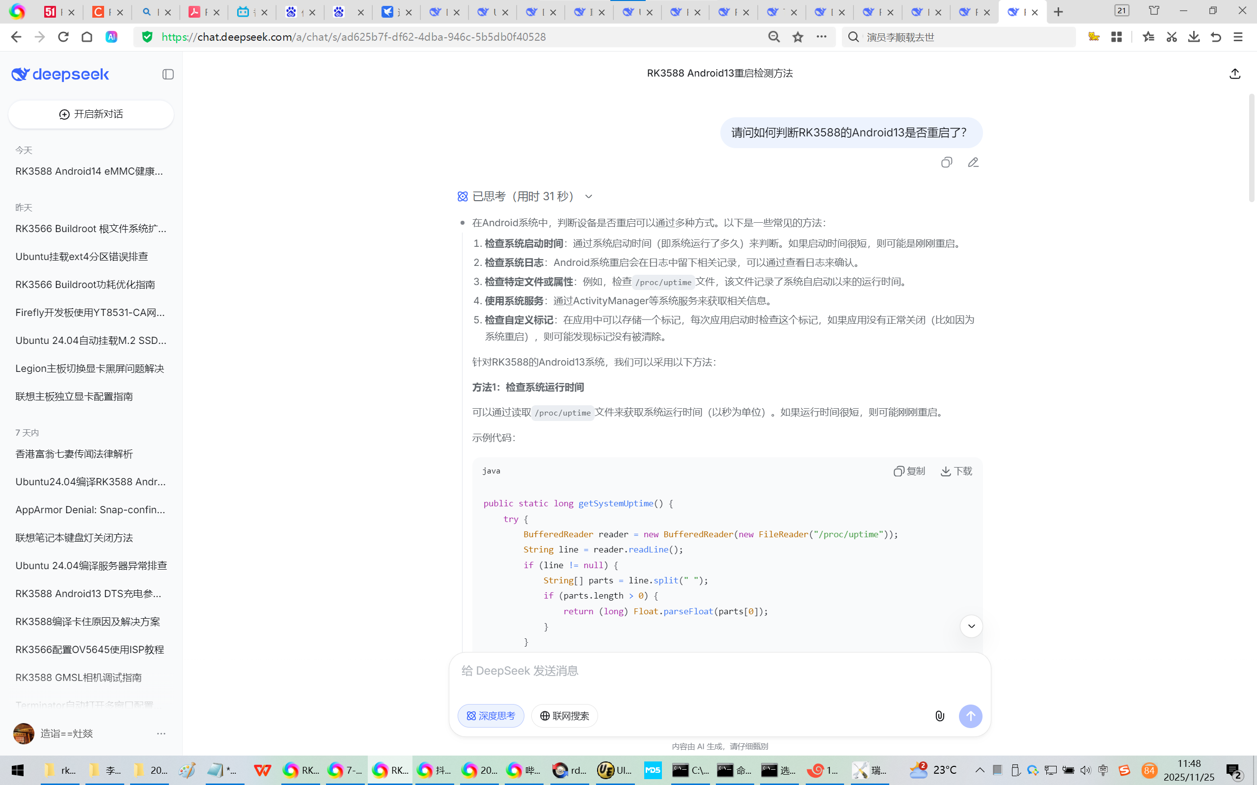 在RK3588的Android 13系统中,可以通过以下几种方式判断系统是否发生了重启: