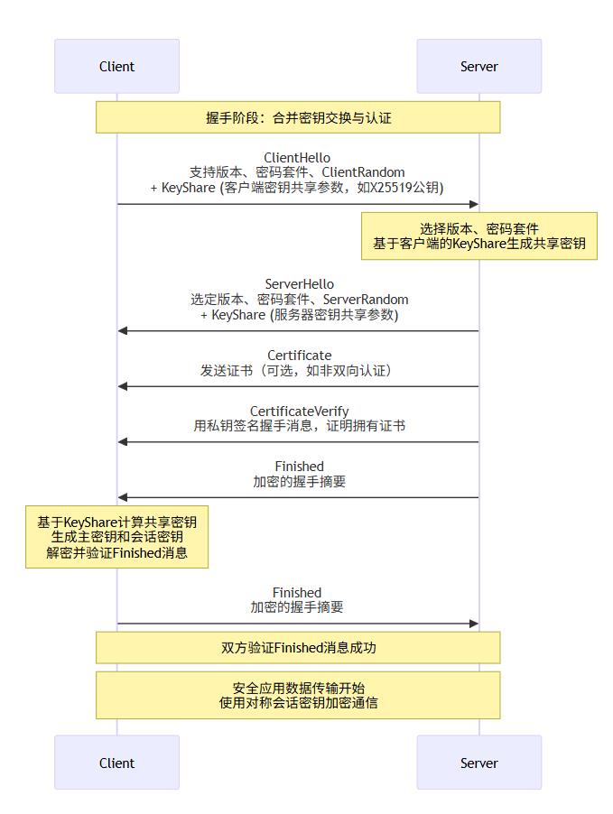 TLS 1.3 通过精简和优化,将握手缩短到了一次往返(1-RTT)