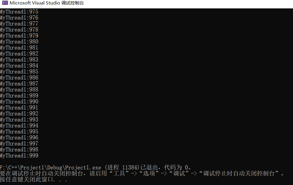 std::cout << "MyThread1:" << i << endl;