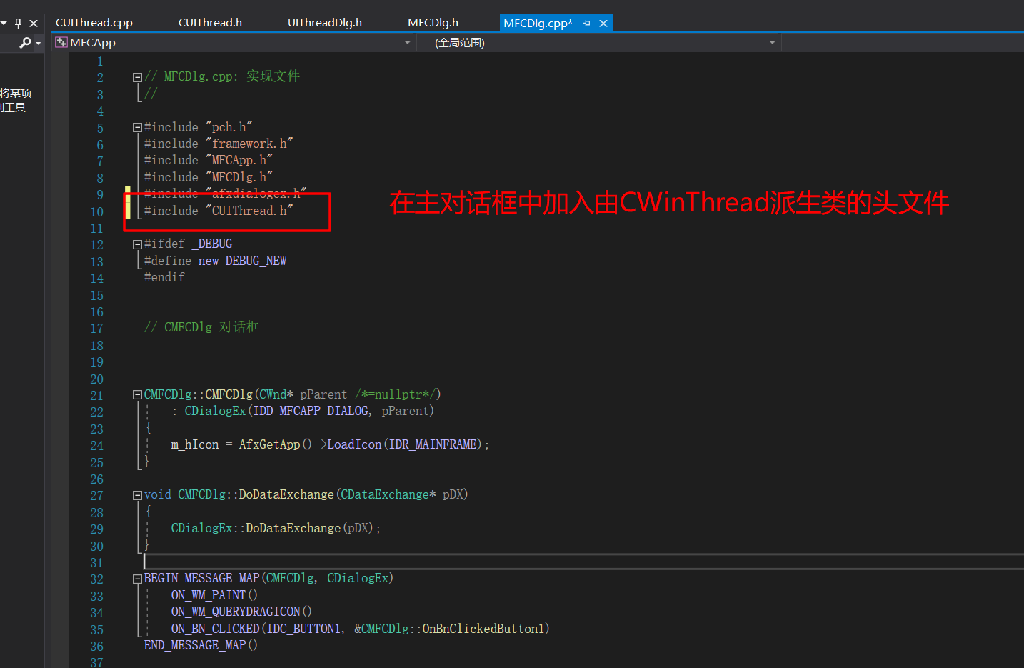 用户界面线程通常用于处理用户输入和响应用户事件,独立于执行应用程序其他部分的线程。 已为你创建并启动主应用程序线程(在 CWinApp 派生类中提供)。