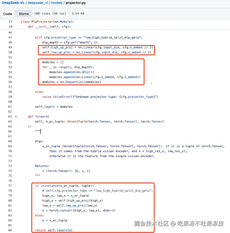 视觉语言适配器。采用两层混合 MLP 桥接视觉编码器和 LLM。首先,两个不同的单层 MLP 用于分别处理高分辨率特征和低分辨率特征。随后,这些特征沿其维度串接,并通过另一层 MLP 转换为 LLM 的输入空间。
