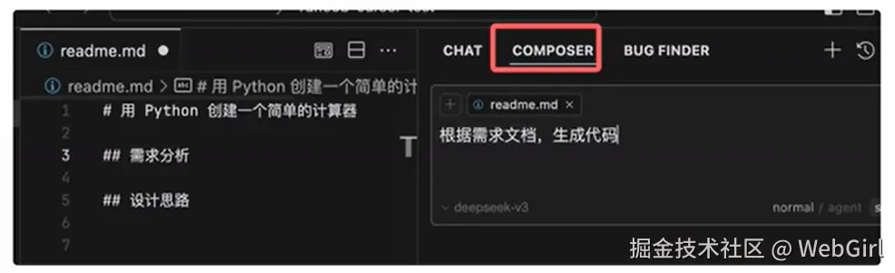 | Composer 模式(常用) | Ctrl + I | Cmd + I | 打开 AI 编辑模式 |