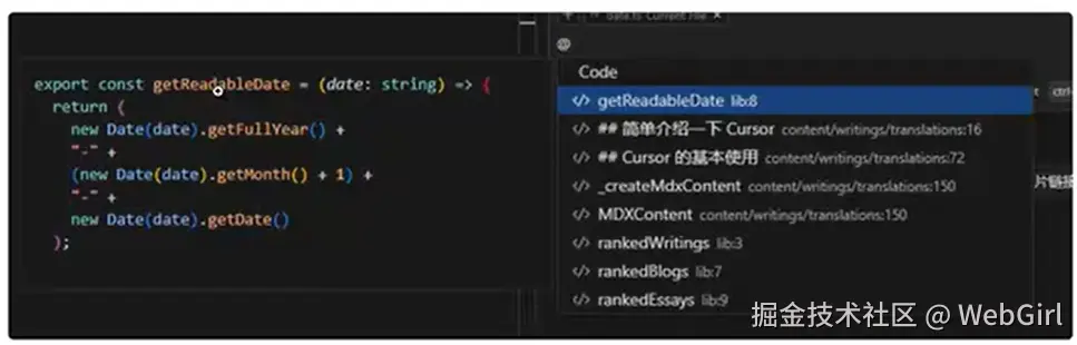 - @Codebase:高级代码库搜索,查找要使用的代码段。