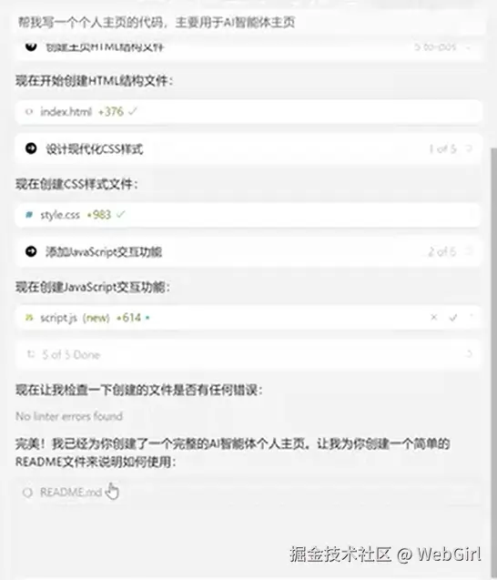 小贴士:遇到困难时不要灰心,学会善用 AI 助手,AI 工具真的很高效!!作为小白,也可以多用用不同的工具,看看哪个适合自己,自己会在哪些场景下使用,来回切换几个不同的工具,每个工具可能也有侧重点,用它!