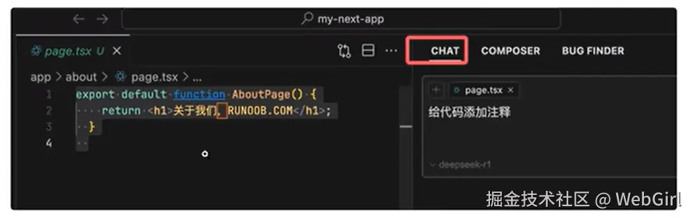 ctrl+l 调出chat窗口进行AI操作