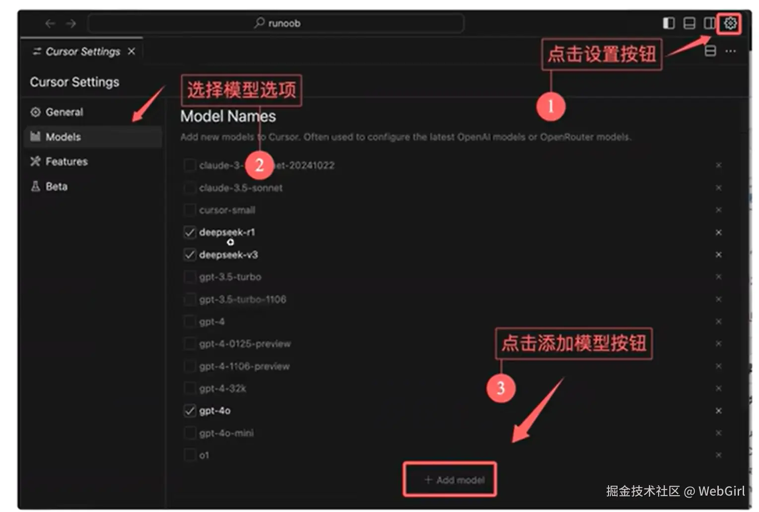 - 在 Cursor 应用中,进入