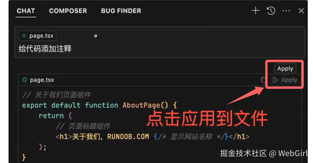 如果 AI 生成的内容不符合你的预期,及时反馈并修正。例如,你可以直接指出问题所在,或者提供更详细的说明。使用 "接受" 或 "拒绝" 按钮来明确告诉 AI 你的选择。