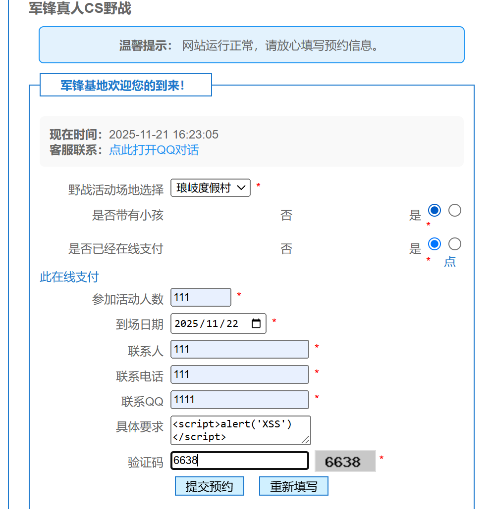 1.靶场网站军锋真人CS野战在线预订系统 v2.0: