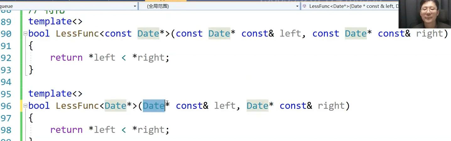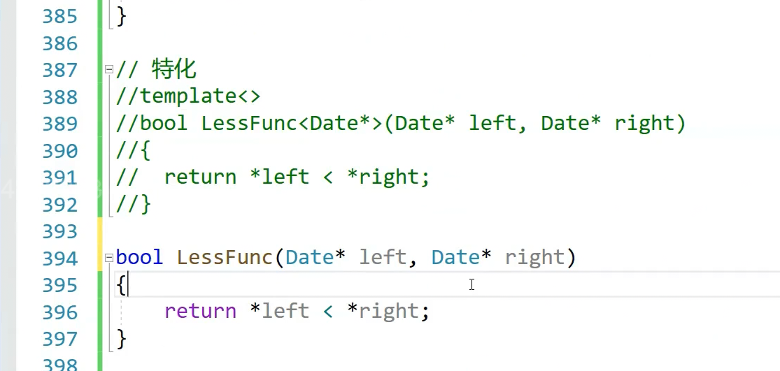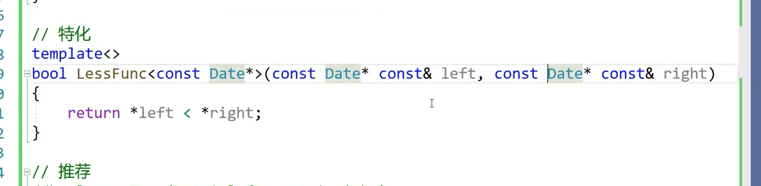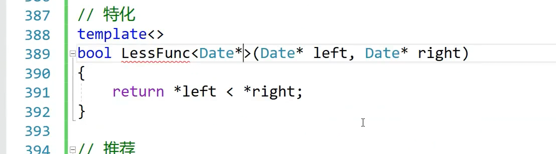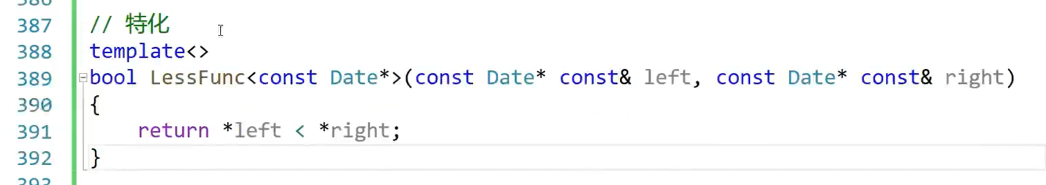 特化是说当这个T类型是其他类型走上面,DAte*走下面这个,对DAte*特殊处理,
