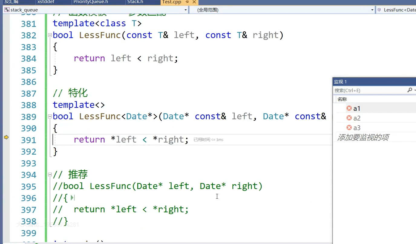 看一下仿函数,实践当中不需要写less和greater,直接用就行。
