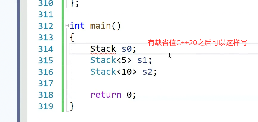 非类型模版参数主要就是为了定义一些大小,固定值,这种。解决这个问题。非类型模版参数可以给缺省值。