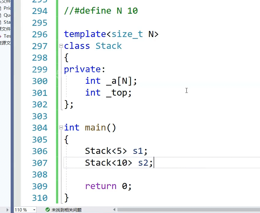我们定义一个静态的栈,可以不要参数,直接用常量,定义的是常量,可以直接用来做数组的大小,编译时候就确定了,模版在编译时候就实例化了,比起宏的好处是什么,宏是写死的