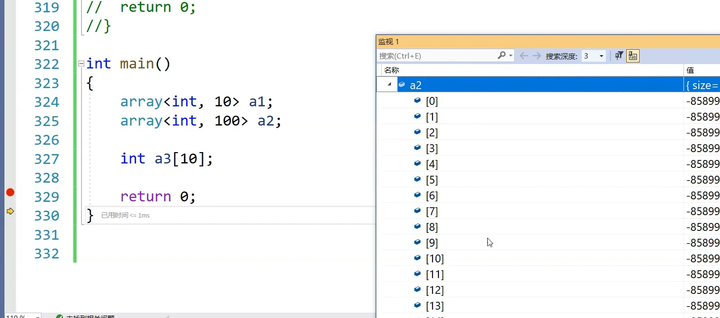 vector不仅可以越界检查,还可以初始化,为什么用静态数组,还是有本质区别,vector在堆,array在栈,栈上开空间比堆上效率高。vector不管多大数组,始终16字节,arrray大小数组越大,占用越大。ayyar对比静态数组越界检查会更好,对比vector数据空间在栈上,效率高,一句指令就把所有变量空间开好了
