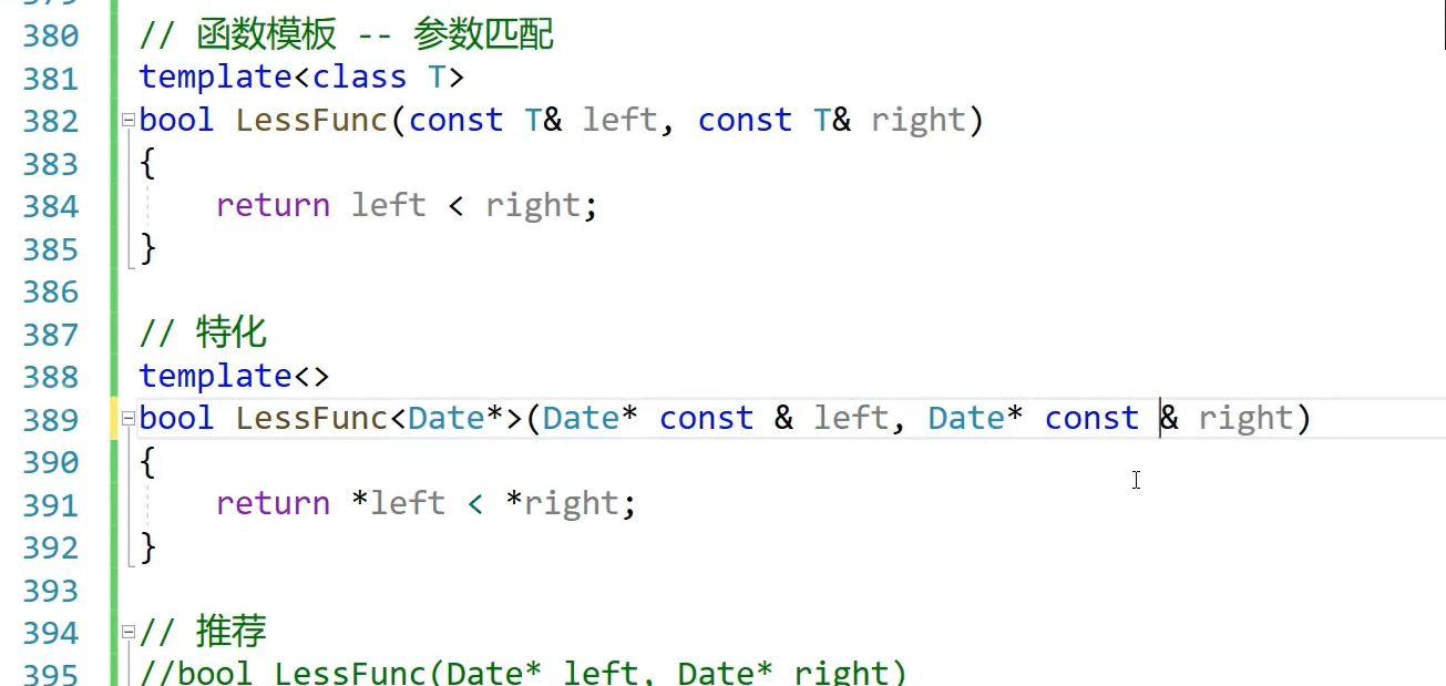 末班和现成的用现成的。所以函数模版推荐这样写。这个和特化可以同时存在,调用固定函数,特化不起作用了。