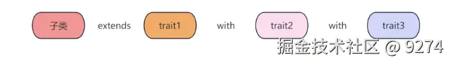 相同点: 类和trait都可以定义成员变量(抽象,具体);继承时都使用extends关键字;