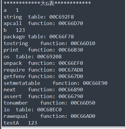_G表是一个总表(table) 他将我们声明的所有全局的变量都存储在其中,本地变量,即加了local的变量是不会存到大G表中的。