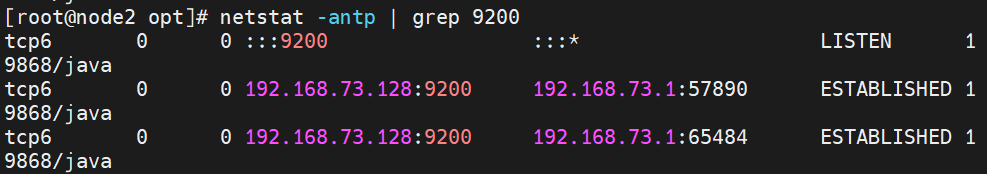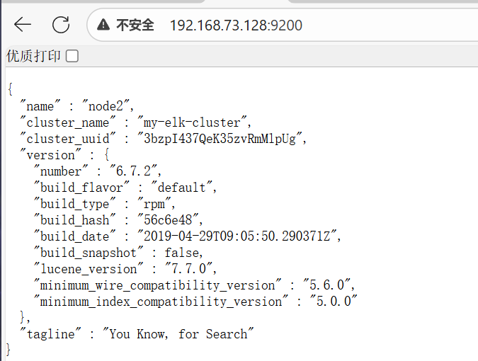 浏览器访问 http://192.168.73.128:9200 、 http://192.168.73.128:9200 查看节点 Node1、Node2 的信息。