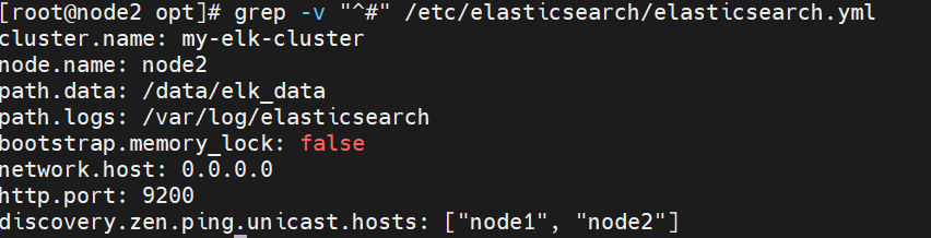 grep -v "^#" /etc/elasticsearch/elasticsearch.yml