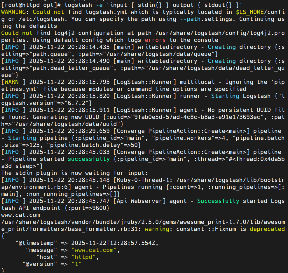 chmod +r /var/log/messages #让 Logstash 可以读取日志