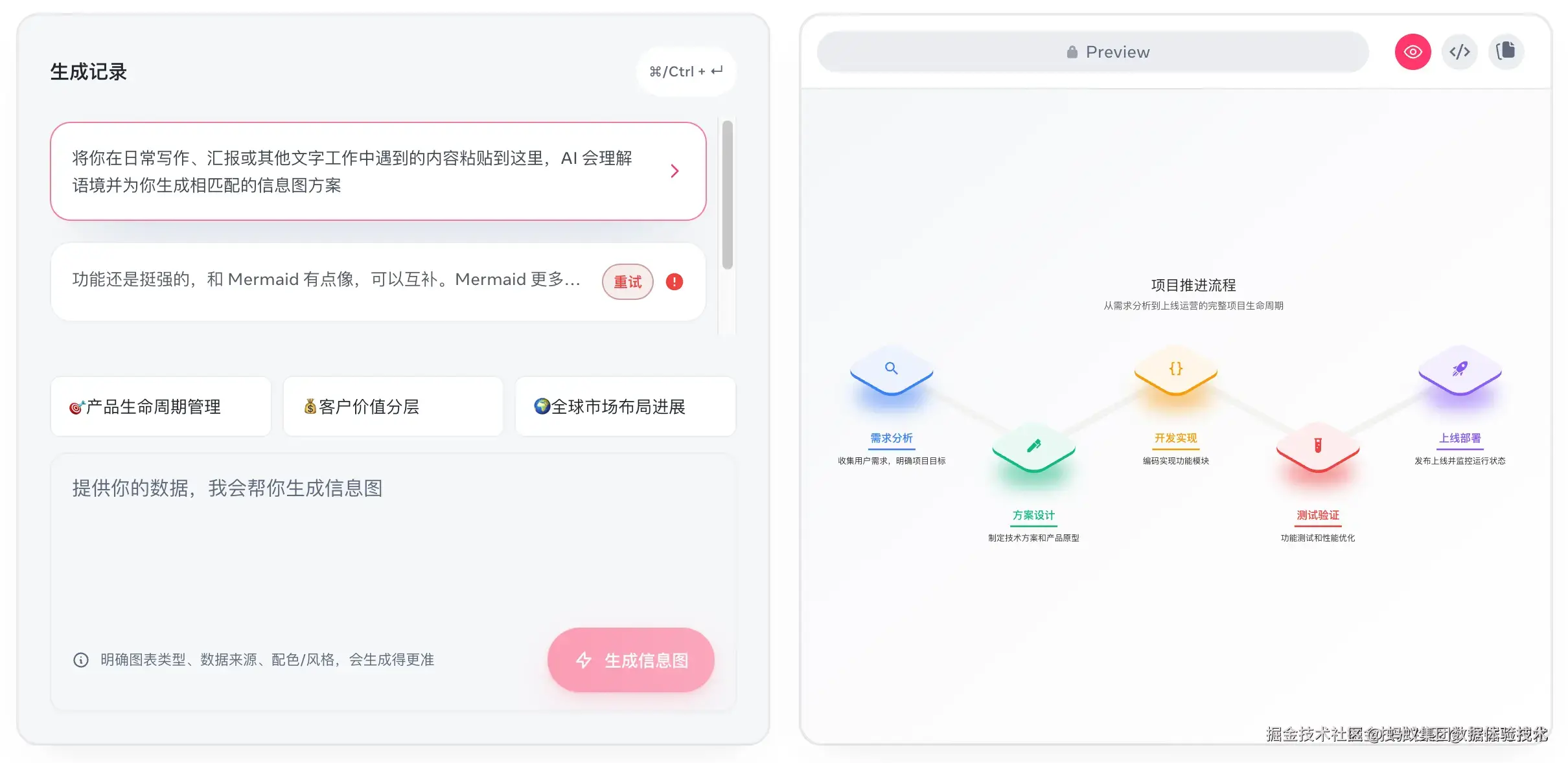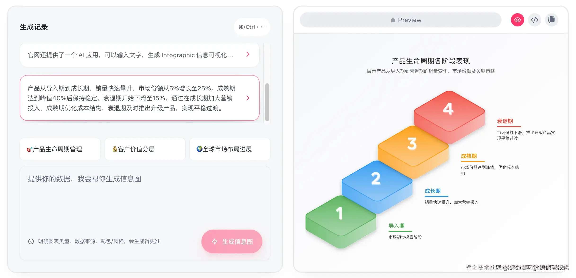 - 让 AI 理解文本,抽取关键信息并生成配置,一键渲染专业信息图。