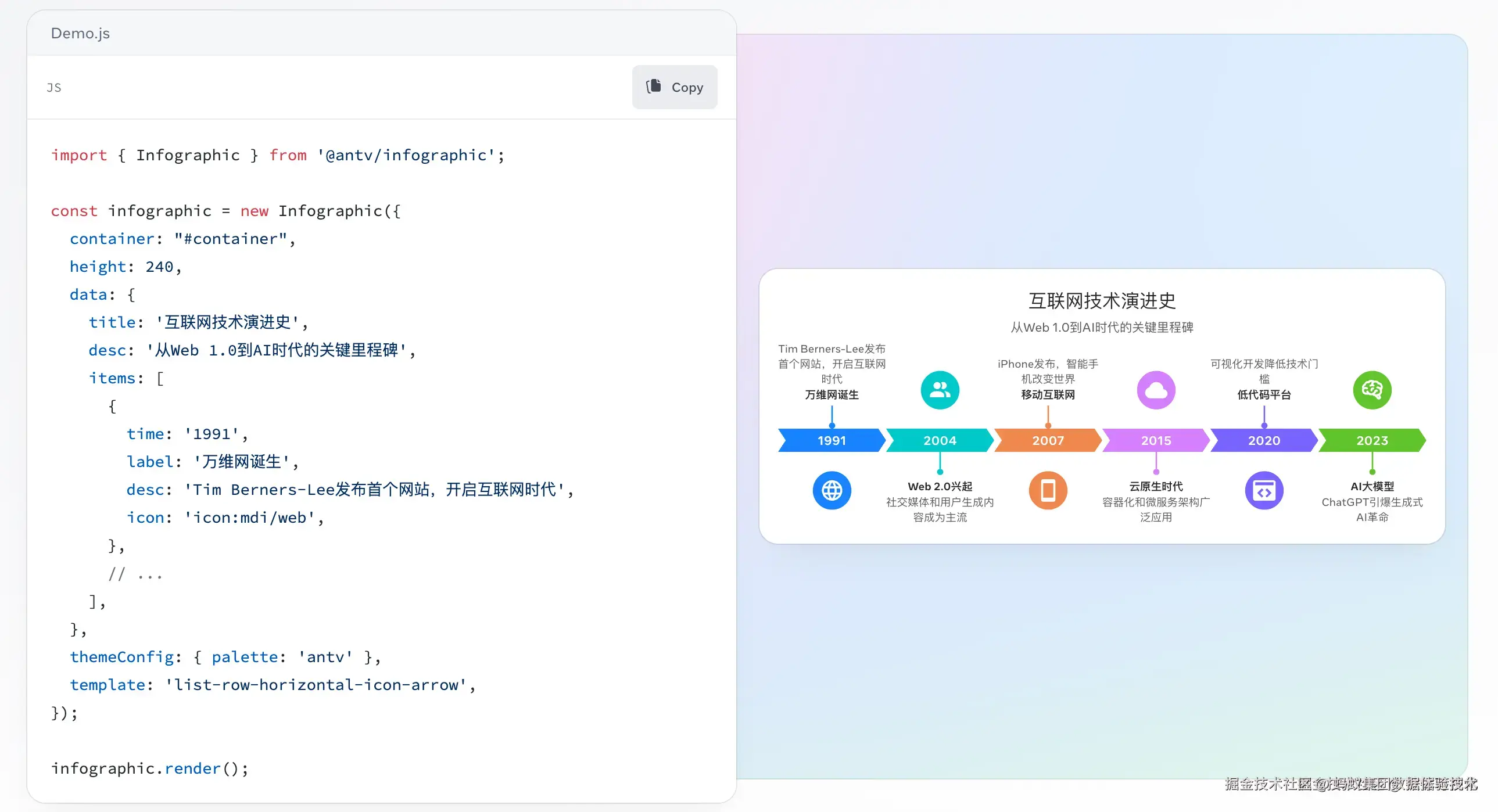 上周末在 SEE Conf 大会上,由蚂蚁的 AntV 数据可视化团队开源 Infographic 信息图可视化,开源地址见 antvis/Infographic,官网在这里。
