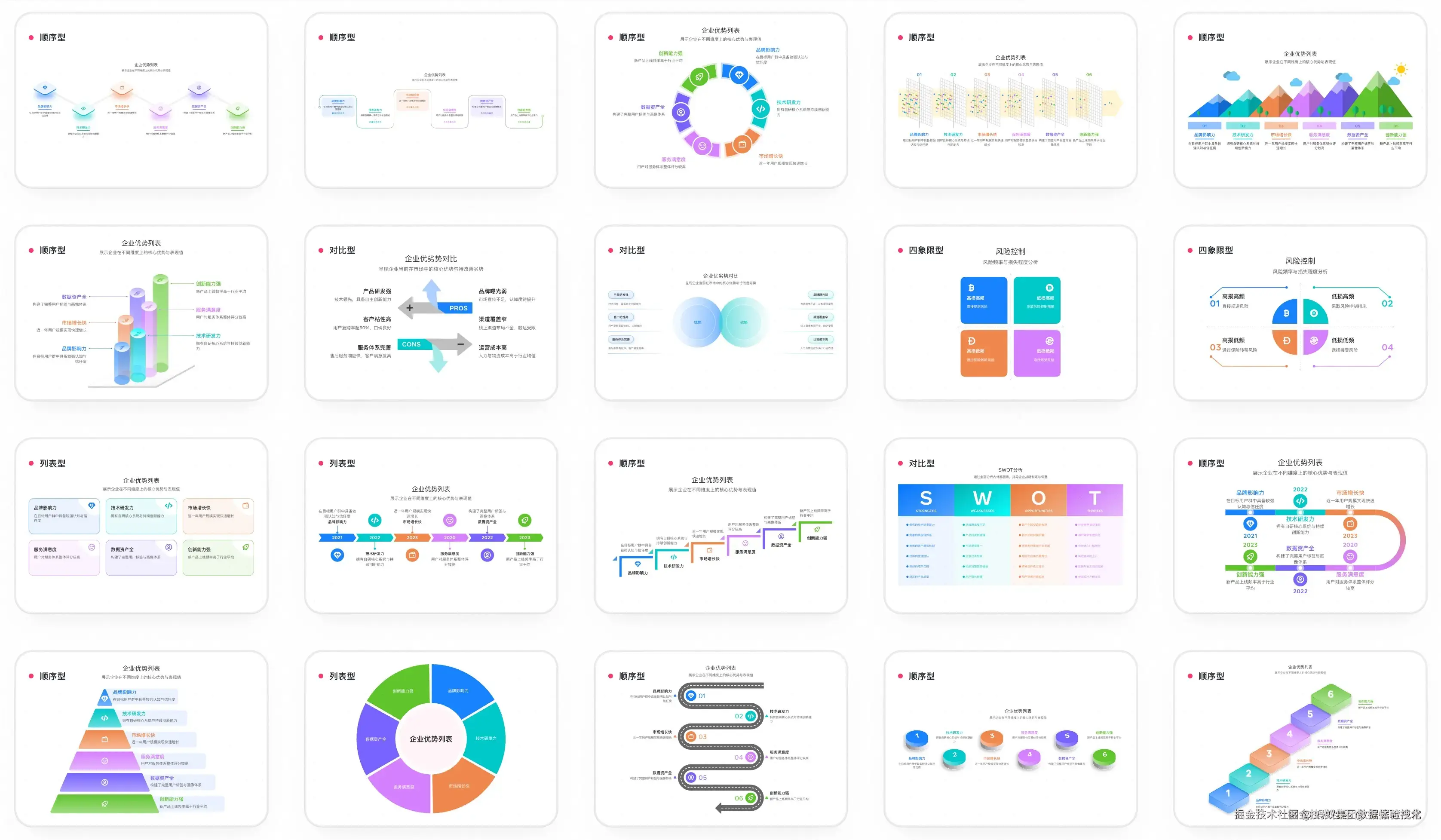 更多的模版截图,可以去这里看 Gallery。另外,看文档还可以做一些自定义开发信息图,基于 JSX 的语法,看不懂,这里就让技术大佬去看吧。