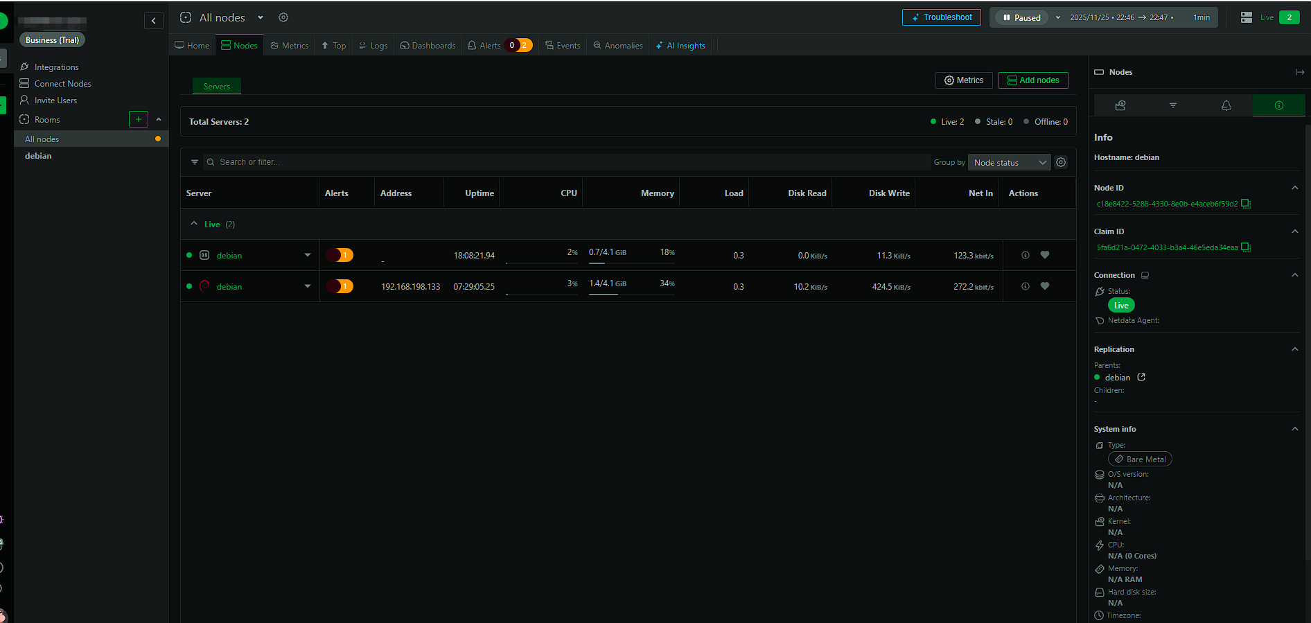 重启Slave上的Netdata。