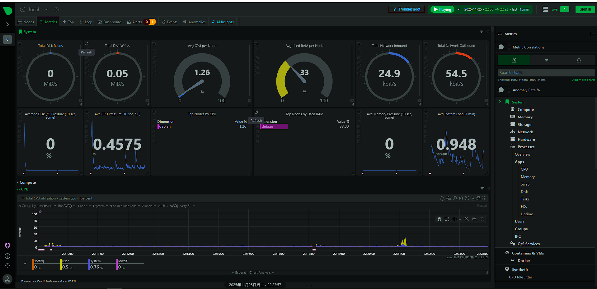 虽说Netdata轻量,但如果你开了几百个插件(什么Apache, Nginx, PHP-FPM, MySQL, Redis, MongoDB全开),在那种1核1G的"乞丐版"云主机上,还是稍微有点吃力的。