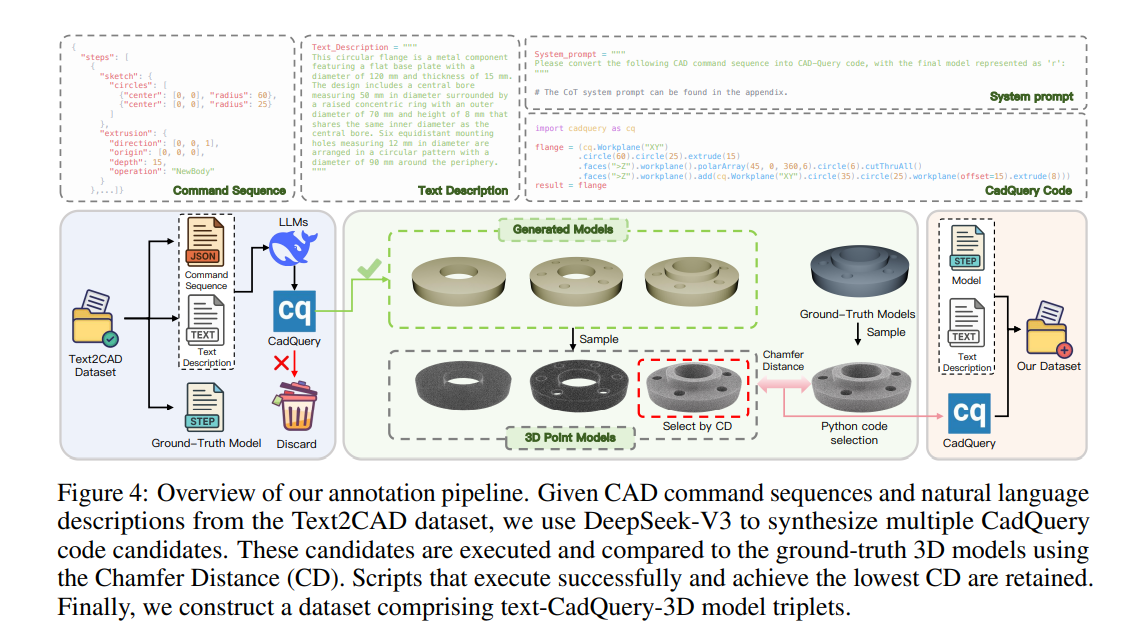 - 用DeepSeek-V3生成多个CadQuery代码候选;