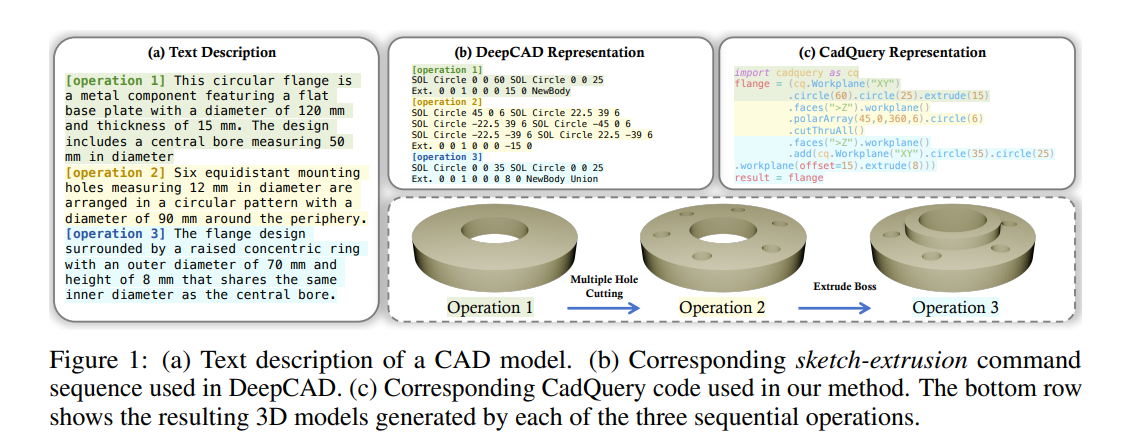 你有没有过这样的经历?想画个法兰盘的CAD模型,得打开专业软件、调坐标系、画草图、做拉伸......步骤繁琐还得熟稔操作逻辑。现在,基于大语言模型(LLM)和CadQuery的CAD-Coder方案,能让你输入一段零件描述,直接生成可执行的CAD代码------今天我们就来拆解这个让CAD建模"动口不动手"的技术!