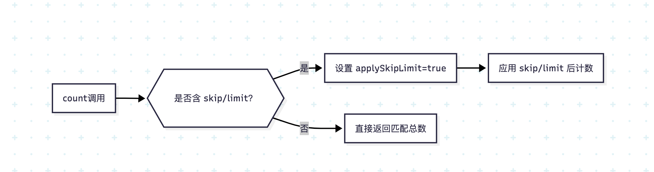 | 计数陷阱 | count() 默认忽略 skip/limit,分布式环境避免依赖元数据计数 |