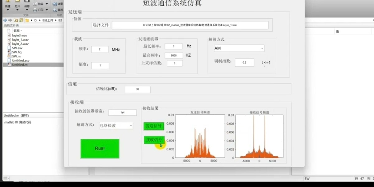 先来段硬核操作------在MATLAB里用GUI搞了个短波通信仿真系统。直接怼语音信号玩调制解调,AM/DSB/SSB三兄弟全安排上,还附赠噪声大礼包。下面边贴代码边唠嗑,看哪种调制方式最能打。