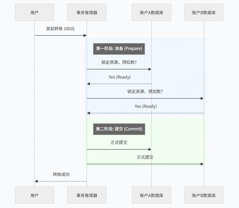 图 3.1:两阶段提交 (2PC) 保证强一致性
