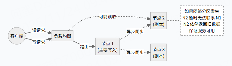 业务痛点:双十一大促,海量用户刷新商品页面。如果因为某个节点同步延迟导致用户暂时看到旧的评论数,或者库存显示稍微滞后,是可以接受的。但如果系统直接报错"无法服务",用户会流失。