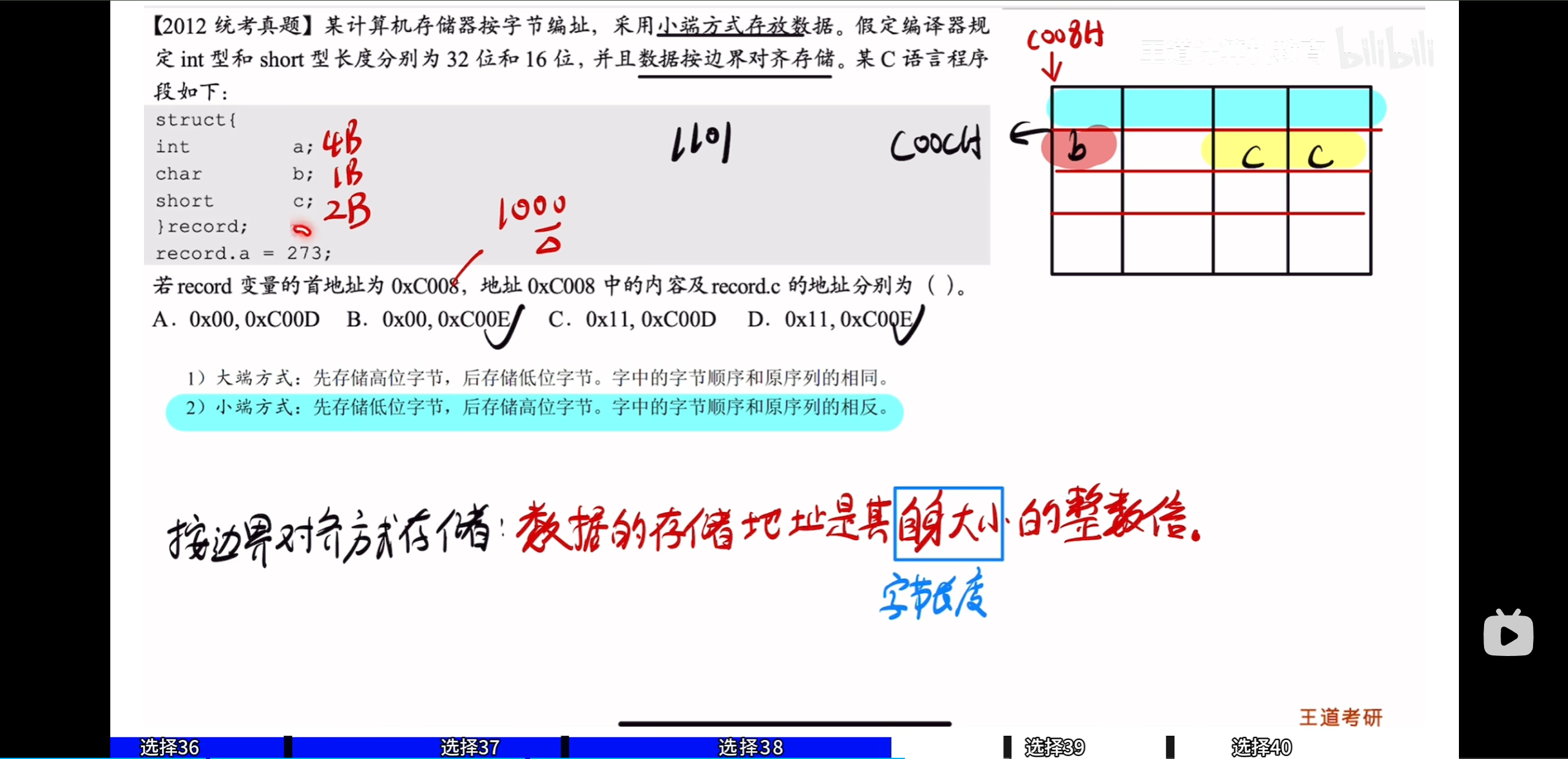 可是该地址是一个奇数,不可能整除2所以他要空出一字节