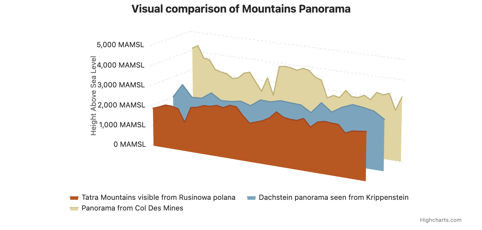 就像在普通的区域图中一样,Highcharts 3D 插件确实允许显示多个区域系列,并可以根据需要使用 分组grouping 和 堆叠stacking 来排序这些系列。