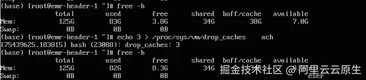 某行业客户发现,在运行较久的机器上,通过 free -h 看到的剩余内存较少,buff/cache 比较多,客户通过分析和查阅资料,通过执行 echo 3 > /proc/sys/vm/drop_caches 来主动释放缓存。客户发现,使用该方法可以回收部分缓存,但是仍然还有大量的 cache 占用没有释放: