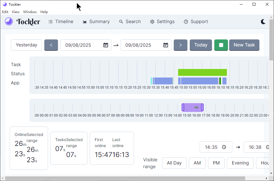 ** 功能 ** :一款免费的时间追踪工具,自动记录电脑上各应用的使用时间和窗口标题,无需注册账号,数据全部本地存储,支持离线使用和 CSV 导出。提供历史记录、可视化时间线、日/周/月统计和生产力分析,帮你发现时间浪费、优化工作流程。支持深色模式、提醒功能,并严格保护隐私。