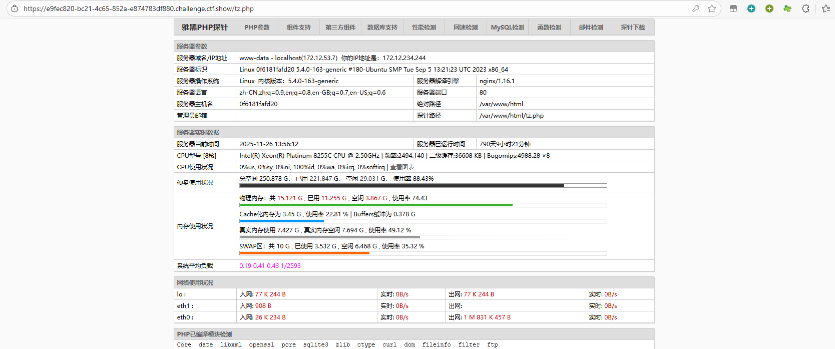 php探针是用来探测空间、服务器运行状况和PHP信息用的,探针可以实时查看服务器硬盘资源、内存占用、网卡流量、系统负载、服务器时间等信息