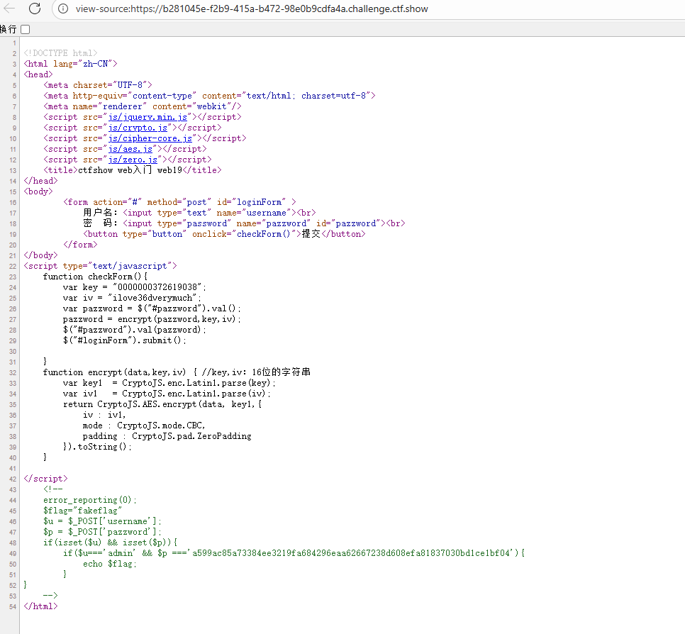 也可通过解码工具,解码a599ac85a73384ee3219fa684296eaa62667238d608efa81837030bd1ce1bf04,此密文为AES加密 根据网页源代码可知