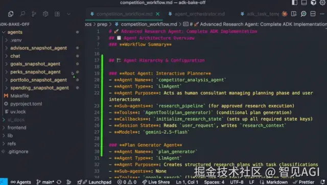 在智能体开发中,回看上一代 Gemini 2.5,它更像是一位"优秀但需要明确指令的程序员"------需要先把架构画好、把每个 Agent 的职责写清楚、把 tech stack 写明白,它才知道如何接手。我们还往往需要额外给它参考模版、补充上下文,才能让它理解我们要开发的智能体结构。