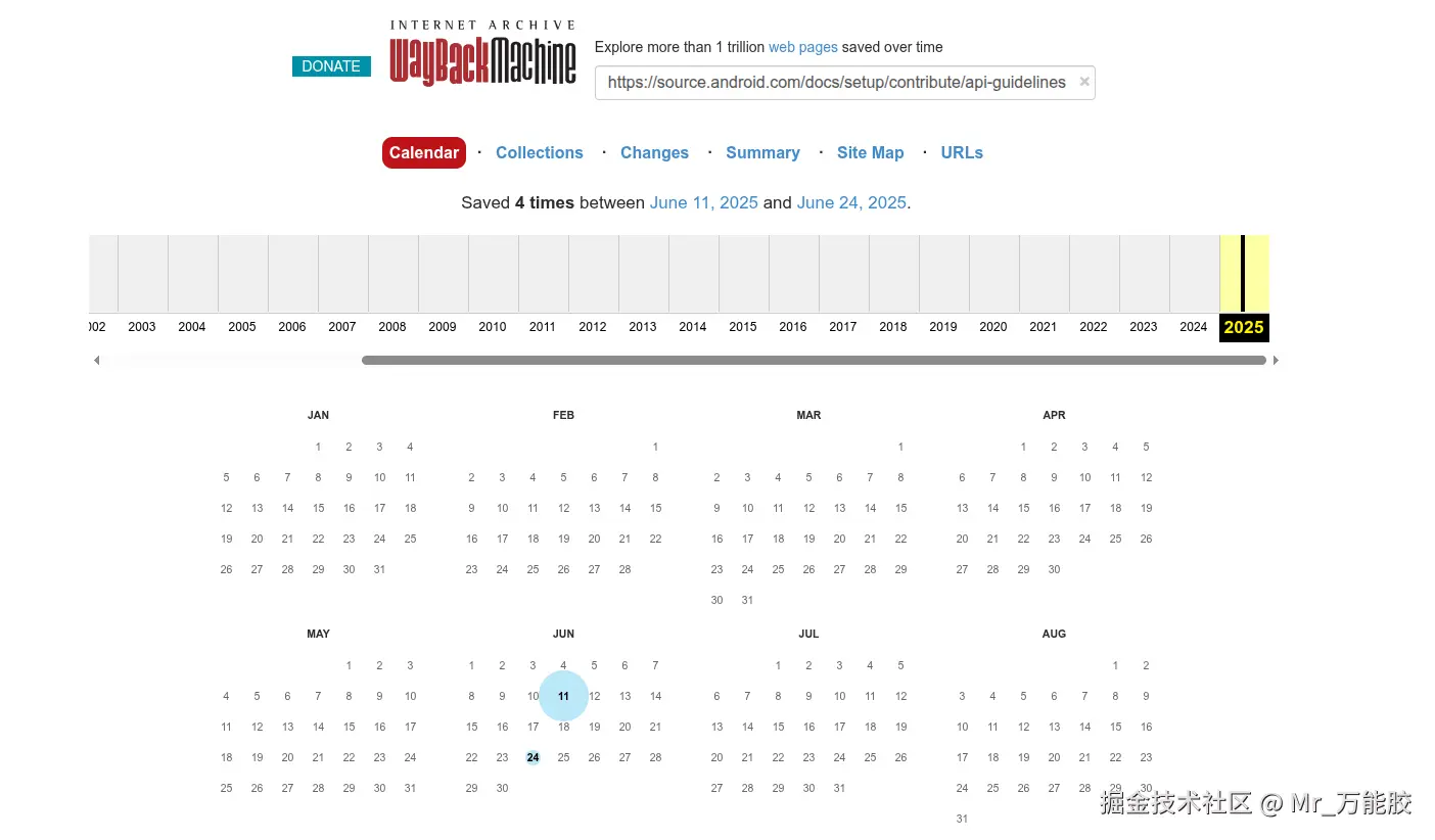 今天在逛 source.android.com 的时候,误打误撞发现 Google 上线了一篇《Android API guidelines》,读完真的觉得干货满满,相见恨晚。然后我瞬间反思了一下,不对啊,这么好的文章,作为我,怎么会才看到的?于是赶忙拿 Web Archive 查了一下,不怪我,从时间上看,确实这个页面也是今年夏天才上线的,想想广东的11月也才算正式入秋,现在读到应该也不算晚。